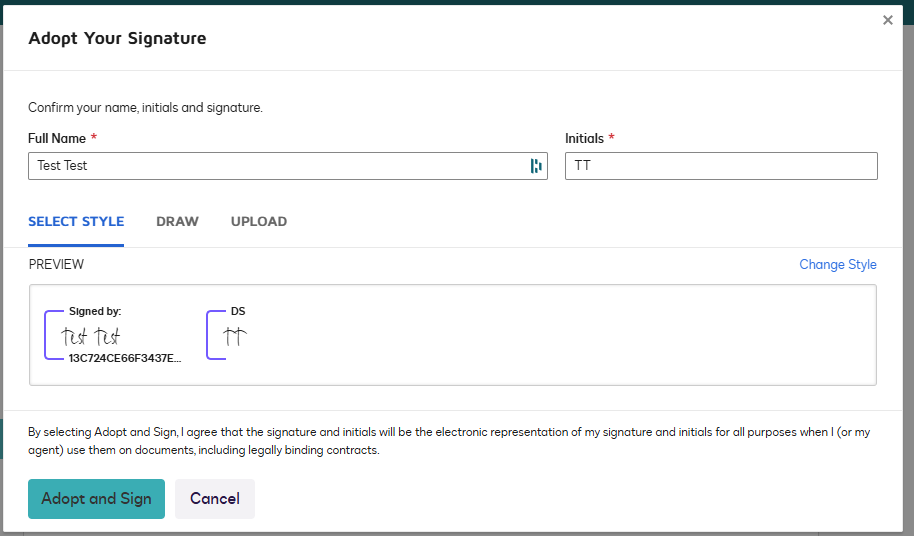 It will bring you to the spaces where you need to sign. By clicking on sign for the first time, you would be able to choose your signature: