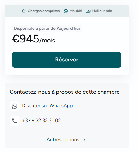 Notre frais de service est nécessaire pour réserver votre chambre avec Joivy. Il est à payer une seule fois lors de votre réservation en ligne. Une fois le paiement effectué, la chambre est à vous et elle est retirée du site pour que personne d'autre ne puisse la réserver !